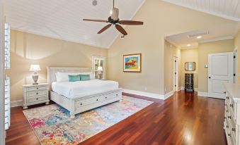 Bedroom 1: Primary Suite, King, Private Bathroom, TV, Deck Access, First Floor