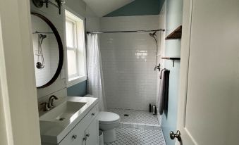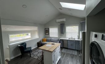 Our newly constructed 432 sqft one bedroom unit with separate private entrance is full of light, air conditioned, and fully equipped with washer/dryer, dishwasher, queen size bed, pull out queen, microwave, fridge, full size oven, on-site/off-street parking and heated bathroom floor. Built to a high standard with many nice features.