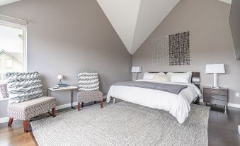 You will find the master suite on the third floor with its own large deck and sweeping views to enjoy your morning coffee or soak in the hot tub after a long day exploring the city.