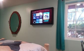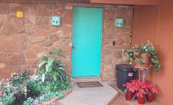 Sedona Spirit is conveniently located near uptown, within walking distance of a brewpub and a couple of restaurants. The room is in an older house in an older residential neighborhood, with off-street parking. The 1-room layout is convenient, but the room is small, with no room for things like a dining table; we ate a few meals on the provided tray tables, with one of us sitting on the easy chair and the other on the desk chair. There is also very little space on which to place items in the bedroom and in the bathroom. There is a fridge and microwave, a Keurig (coffee was provided), a couple of coffee cups, and a couple of tumblers. There were no other kitchen items (e.g., plates, forks, bowls, etc.), so it is best not to plan to eat meals there. You need to be tall to reach and refill the reservoir on the Keurig. The room was quiet, with only minor noise from upstairs. The bed was comfortable, and temperature control in the bedroom was good (not in the bathroom, which was cold). The bathroom is compact, but the shower is large and well lit, and the towels were excellent. We experienced a couple of maintenance issues (a GFI breaker that tripped for unknown reasons and a (hourly) running toilet). Sedona Spirit was too small for our 1-week stay, and a typical motel room would have been better. The immediate neighborhood is not particularly nice, with next-door dogs that barked several times a day and several inoperable cars partially covered with tarps.