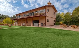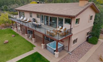 This Sedona home is perfect for family gatherings and wellness retreats as the home has a yoga room with views of Brims Mesa to name a few. It is located walking distance to downtown Sedona, the Jordan Trail is in the backyard, and Cathedral Rock and Devils Bridge are a short drive away for incredible hiking and outdoor yoga. The yard and balcony also provide a beautiful setting for any gatherings. The crystal culture and vortex energy there is also very conducive for yoga themes. For wellness retreats we suggest considering the moon phase (full or new). Sedona is one of the darkest places in North America and stargazing is life changing. New moons provide incredible views of the milky way galaxy and stardust. Full moons provide incredible moon views, both of which could be incorporated into your retreat or special event theme.