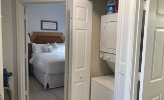 The interior decorating and furnishings are modern, light and spacious. Master bedroom has a water front king size bed and en-suite. The 2nd bedroom has a queen bed and large TV. Unit contains AC and washer-dryer. Kitchen is fully equipped with microwave, coffee pot, oven, range dishwasher and more. There are three flat screen TVs. Free Wi-Fi and cable. Bedding, linens, and towels are included and you will also find other amenities such as an iron, iron board and hairdryer for your convenience.