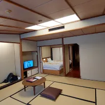 The best accommodation in Sukunami hot springs. Huge rooms with western beds and Japanese influences. The dinner and breakfast buffets included are out of this world! The public baths are spectacular, especially the outdoor rock onsens are a destination on their own. Free flow of drinks and popsicles at the two lounges