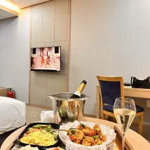 1. 객실 내 물 외의 음식물은 먹고 난 후의 비용을 퇴실 시 청구해야 합니다.