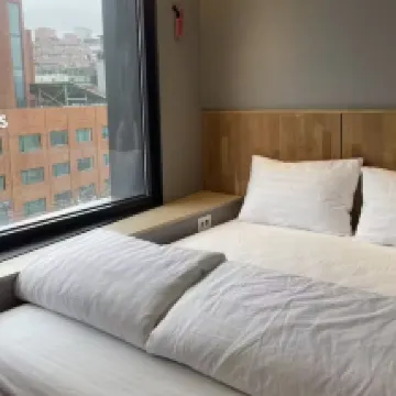 Отель прекрасно расположен: прямо за дверью есть несколько ресторанов, а до станции метро Hongik University, которая является популярным районом, можно дойти примерно за 5 минут. На стойке регистрации можно заказать еду на вынос. В номере, помимо двух односпальных кроватей, достаточно места только для двух чемоданов. Душ в ванной комнате представляет собой один кран, соединенный с раковиной, без отдельной душевой зоны. Отель предоставляет простой завтрак на B1, состоящий из тостов, пирожных, кофе, сока и диспенсера для воды. Там же можно заказать еду на вынос. И номер, и главный вход в отель защищены паролями. Номера убираются каждые два дня. Мы останавливались в номерах 702 и 703, которые находятся недалеко от главной дороги. По какой-то причине в 702 было особенно шумно; шум транспорта был очень заметен. В 703 было тише. Вкратце: недорого и хорошее соотношение цены и качества.