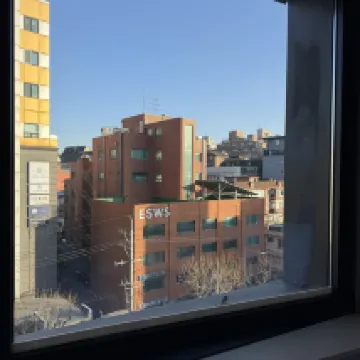 Персонал на ресепшене был очень дружелюбным, а на цокольном этаже (B1) была бесплатная вода и лед, поэтому не было необходимости ходить в круглосуточный магазин. Отель расположен прямо рядом с районом Ённам-дон, где много модных магазинов и ресторанов. Он также находится недалеко от выхода №4 станции метро Хондэ, что делает его очень удобным отелем в целом. Единственные недостатки — небольшой размер номера и маленькая ванная комната.