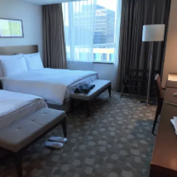 Комфортабельные номера с отличным видом: площадь номеров для пятизвездочного отеля в Сеуле очень приличная (более 40 кв.м), декор элегантный и хорошо поддерживается; постельное белье приятное для кожи, ванная комната с раздельной зоной для душа и туалета (биде), есть китайский переходник для розеток; из некоторых номеров открывается вид на башню Намсан в ночное время, а панорамные окна обеспечивают отличный обзор; номера в новом корпусе оснащены более современным оборудованием.