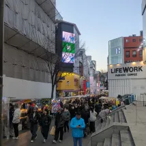 Посмотрите 🆙 вывеска высокая, так как отель начинается на 4 этаже. Номер был крошечным. Он предназначен для туристов с рюкзаками. Не для багажа. Кровать была с небольшой набивкой и жесткими пружинами. Всего 2 плоские подушки. В нашей ванной комнате плитка начала отваливаться от стен. Она была полна черной плесени и ужасно пахла. Общая кухня была хорошей, там был бесплатный кофе и фильтрованная горячая и холодная вода. Расположение в самом центре Мёндона для шопинга и продавцов еды. Он находится очень близко к метро, огромному 12-этажному рынку Дайсо и рынку Намдэмун. Если бы ванную комнату починили и предложили вторую подушку, это получило бы гораздо более высокую оценку.