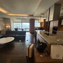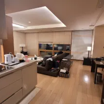 Номер не похож на традиционный отель, а скорее на гостевой дом. В номере большая гостиная, кухня с индукционной плитой, стандартным холодильником, духовкой и микроволновой печью, винным шкафом и полным набором посуды, включая кастрюли, миски, ножи и вилки. Спальня и ванная комната тоже очень просторные. В спальне две односпальные кровати, на которых могут разместиться три человека. Диван в гостиной также можно разложить в кровать, но одеяло стоит 25 000 вон. Внизу находятся станция метро и большой универмаг, что очень удобно. Единственный недостаток — слабый напор воды и слабый напор воды в душе.