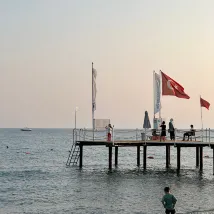 Прибываем здесь с 25.07 , людей очень много, детей куча, поесть негде ждешь очередь пока освободят стол. С 27.02 пошел такой наплыв , что очень сложно найти стол для еды. Малышка 1.2 года заболела КОКСАКИ энтеровирус (температура и высыпания на коже ,рвота ,понос , сейчас высыпания расползлись язвами по всем ступням и ладошкам) кстати в соседнем отеле такая же зараза ! скорее всего это в бассейне подхватили. При нас малыш без памперса для купания покакал прям на ступеньки бассейна , это начало размывать , пока кто то ходил за совком 10 минут прошло, а за 10 минут уже много чего размыло. Не купайтесь в бассейне! Очень омрачила болезнь отпуск ,энтеровирус это ужасно. Аптека рядом все помогут и расскажут, принимают русские деньги но лучше ехать с наличкой ! в медпункт обратилось много детей с такими же симптомами, но об этом никто не говорит. Уборка столов одними и теми же тряпками для всего, персонал старается все делать быстро иногда может даже тарелку у вас забрать , хотя вы не доели. В первом номере пахло канализацией, переместили в другой.Совет , брать с собой мирамистин для обработки, детские стульчики плохо вытирают, теми тряпками что и обычные столы. Матрасы очень жесткие , уборка в номере ежедневная, но простыни не меняют, под тумбочками не убирают. Еды море , ультимейт есть можно везде и всегда арбузы, гриль и тд ! Завтраки так себе , мало разнообразия, ужины, обеды и гезлиме отлично Одна и та же курица , баранина и индейка на 7 день уже не идет устаешь. Кофе вкусный в баре с десертами. Алкоголь не пьем обычно, брали бокал вина на ужин , вино есть только сухое белое или красное. Есть свои плюсы, но больше минусов. Отель больше подходит для детей от 5+ , тем кто хочет накататься в аквапарке на год вперед. Обслуживать будут впервую очередь турков , а их тут больше половины всех гостей отеля. Для малышей мало развлечений , за такие деньги я ждала анимацию , которой почти не было ! Не плохие шоу программы для взрослых, для детей так себе. Пляж очень маленький для такого количества людей !!!! Это вообще отдельная тема , с малышом вход ГАЛЕЧНЫЙ , весь пляж песчаный или песчано галечный , но вход в море ( что самое важное !!!!) галечный , волнами уносит так , что одна с маленьким ребенком ты в воду не зайдешь и не выйдешь !