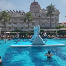 В этом году выбрали для отдыха в июне этот отель. Нам все понравилось! Мы приехали в отель в 11 утра. Заселили сразу, несмотря на то что были турецкие праздники и народу было много. Номер 6111 понравился, но видно что надо уже делать ремонт. Бар обновлялся каждый день. Уборка каждый день. Расположение номера тоже понравилось, находился над главным рестораном и рядом с морем. Окна выходили на соседний новый отель, где делался ремонт, но строительные работы нам не мешали. Отель вот-вот откроется. На пляже шезлонгов всегда хватало, в любое время. Пляж по ширине не длинный, кажется маленькой зона купания из-за понтона где ныряют, но места хватает поплавать. После обеда наплывают какие-то палки/водоросли, из-за этого заходить в море немного не приятно. Отличная зона горок, она находиться в дальней части отеля. Очереди на спуск были большие на праздниках, потом народу было меньше и ватрушек всегда хватало. На территории три зоны горок. Первая и вторая зона находятся рядом , одна с ватрушками, другая без. Про третью зону мало кто знает, она находится за мостиком за другим корпусом. Там вообще нет народу.) Тренажерный зал великолепен! Большая зона, много тренажёров, всё работает. Вода, полотенце в доступе. По еде. Мы не прихотливы в еде, найти что поесть всегда было. Очень понравилась жареная рыба, которая была в обед в ресторане около пляжа. На завтраке всегда вкусная выпечка, симиты, чурросы. В кафетерии большое разнообразие мороженого и пирожных. Отель предоставляет 2 бесплатных посещения a la cart, мы выбрали итальянский и азиатский ресторан, было вкусно. Анимацию особо не видела, видимо все проходило у бассейнов, а мы тусили на пляже. На пляже волейбол был. У нас был поздний выезд. Хотела продлить номер, но увы в этом отеле продление очень дорогое, 125 евро с 12-16. Помыться после пляжа можно в Спа. Недалеко от отеля есть автобусная остановка. Автобус BA 22 довезет до Белека за 40 лир ехать минут 20, до Легенды за 45 лир ехать минут 30, до Анталии Молл 110 лир ехать около часа. Долларами тоже можно расплатится. В целом, мы остались в полном восторге от отдыха в этом отеле и с удовольствием рекомендую его всем!