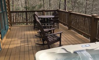 The kitchen comes fully stocked with utensils and ample cookware for those times when you had rather have a quiet night in cooking the food that you provided with the GE stainless steel cook top/range or the GE stainless steel microwave, or utilize the charcoal grill located on site. Then afterwards step out onto the deck and relax in the new Trex outdoor furniture and take in the peacefulness of the forest or relax in the 6-person hot tub with color changing lights and gaze up at the stars.