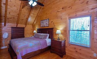 This beautiful cabin rental in Wildwood Forest resort offers 2 bedrooms and 2 full bathrooms that comfortably accommodate up to 6 guests on their fun-filled Smoky Mountains vacation getaway! The main level of your resort cabin features a fully equipped kitchen with new stainless appliances, breakfast bar, and family dining area for enjoyable meals together. Additionally, the living room with gas fireplace, a 50” flat screen television, and a queen sleeper sofa provide the perfect space for entertainment. The main-level's bedroom has a Tempur-Pedic queen-size bed, flat screen TV and a bathroom with a large walk-in shower. The upstairs bedroom has a Tempur-Pedic king-size bed and offers a full private bathroom and a 42” flat screen TV.