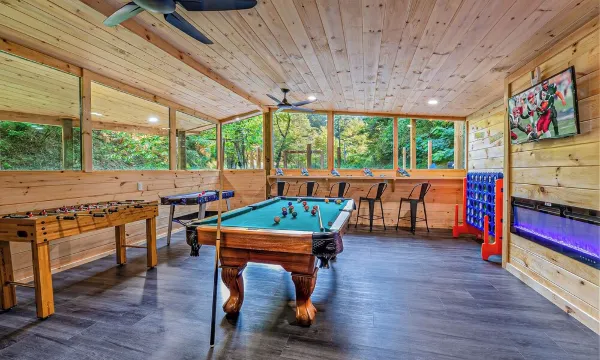 When we arrived we were so excited! The place was beautiful! They've thought of everything!! The creek running in front if the porch was so pretty and sounded amazing! We did see a Bear walk in front of the house! Our family played pool a lot! The beds were comfortable and everything was so clean! We will definitely stay again!!