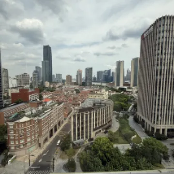 Расположение отличное, сначала не поняли как попасть в номер, но здесь нам оперативно ответил молодой человек и заселил нас даже раньше времени, за что огромное спасибо! Из минусов - одноразовые полотенца, которые не меняли все 5 дней и в целом уборки не было, но она нам и не требовалась, думаю, если попросить, то номер уберут. Есть холодильник и микроволновка, что очень удобно. До метро 10 минут пешком, прям в здании есть небольшой магазин, где можно купить практически все. Рядом Старбакс и 7eleven. Вид с номера замечательный