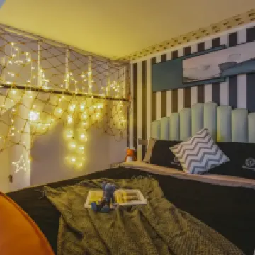 Luxe Chic Black & White One-Bedroom, One-Living Room Twin Room