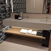 Мы приехали в отель в 9 вечера, но на нём не было никакой рекламы, поэтому мы его не увидели. Пришлось ходить кругами, а парковка была маленькой. Мы ждали полчаса, прежде чем нам её предоставили. Номера отеля располагались на низком этаже и производили довольно удручающее впечатление. Оборудование и удобства были невообразимы для бренда Marriott. Фен только очень громко шумел и вибрировал, но почти не продувал воздух. Мы уехали из дома в 8 утра следующего дня и вернулись в 15:00, а номер так и не был убран. Можете себе представить, каково это – не иметь в номере минеральной воды. Мы позвонили в бар, чтобы спросить, почему номер не убран, но бармен ответил, что в их отеле нет ни менеджера, ни администратора лобби, ни менеджера по этажу, вообще нет менеджеров. Это было поистине ошеломляюще!