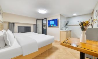 這家店的位置很好,離腫瘤醫院,國家小童醫學中心,質子重離子醫院都很近,房間很乾凈,大落地窗給人感覺心情很舒暢,房間配套齊全,連鍋碗瓢盆都給配上了,接待人員服務很熱情,很親切,有問題第一時間就幫我解決,性價比很高的一家