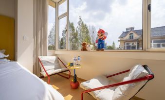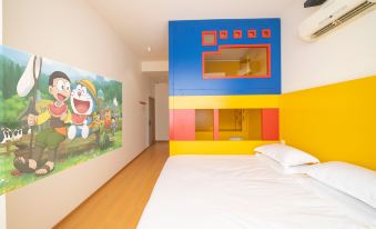Big Bear Little Bear Parent-Child Homestay offers a fun play space for children. The common area features a children's slide, a full-wall Lego board, a magnetic drawing board, and Super Mario the plumber. Each of the seven themed rooms has its own unique charm, complete with a relaxing balcony, buildable tatami cube beds, a treehouse slide that kids absolutely love, a rooftop starry tent, and companions like Pac-Man, Doraemon, and the Minions. This hotel is more than just a place to stay—it’s a space filled with endless joy, designed to fill your journey with children's laughter!