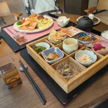 Ответ от объекта размещения: 尊敬的賓客您好,感謝您入住御宿和庭酒店體驗我們的日式定食與西式洋食兩款早餐。我們會在賓客入住辦理時管家主動為您介紹早餐菜單,幫您引導挑選自己心儀的款式,次日早間8:00-10:00在一樓香和靜茶室大廳用餐,無論從食材搭配、氛圍、品質、擺盤每一處都充滿細節之美,日常我們看到最多賓客用餐前馬上打開手機拍一張精緻美美的照片記錄下來。御宿和庭管家零等待服務伴隨每一位進入酒店的朋友,我們竭盡所能,希望每一個客人都感受到御宿和庭的體貼和温暖。歡迎您再次光臨!