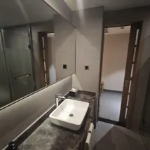 При заселении мне предоставили ванну большего размера. Я предпочитаю дизайн просторных номеров. Панорамные окна с обеих сторон создают очень приятный визуальный эффект. Персонал был очень внимателен и терпелив, объясняя всё подробно. Кроме того, ванна с солью была очень комфортной.