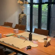 Интерьер же полон сюрпризов 🎉! Цветочные композиции, каллиграфия, экспонаты… Везде чувствуется атмосфера изысканной элегантности 🍵. Здесь можно даже попробовать переписывать сутры, успокаивая душу с помощью кисти и туши. Эту уникальную культурную атмосферу поймёт не каждый! Вид на сад из окна захватывает дух, а чаепитие с созерцанием природы — это просто идеальное воплощение размеренной жизни 🍃.
