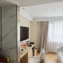 Номер был чистым, аккуратным и тихим. Он находился недалеко от станции метро, а прямо за отелем было много ресторанов, что было очень удобно.