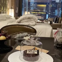 На этот раз я взяла с собой детей и мужа в Banyan Tree и осталась там на одну ночь. Вчера был день рождения моего мужа, а сегодня День матери, поэтому мы решили не оставаться дома и провести выходные там. В то время я выбрал несколько отелей с видом на набережную Вайтань и в конце концов остановил свой выбор на номере с видом на реку Вайтань в отеле Banyan Tree. При бронировании я попыталась оставить поздравление с днем рождения мужа и немного волновалась. Я не ожидала, что отель преподнесет нам настоящий сюрприз: когда я заселилась, то увидела надпись «С днем рождения», сделанную из чистых листьев и лепестков роз, рукописную поздравительную открытку и воздушные шары на кровати в качестве украшения. Это было действительно продуманно! Позже они угостили нас вкуснейшим шоколадным тортом. Моему сыну очень понравилось, и муж тоже был очень счастлив. Я считаю, что это пребывание того стоило!