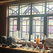 Номер небольшой, но в нем есть всё необходимое, и обслуживание тоже хорошее, особенно завтрак! Ресторан оформлен очень художественно, а витражи очень оригинальны.
