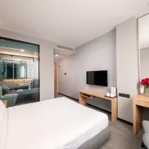 Очень доволен пребыванием! Отель элегантный, номера чистые и аккуратные, удобства полные, а персонал был теплым и внимательным. В следующий раз снова выберу это место! И это отличное соотношение цены и качества, очень рекомендую! Соотношение цены и качества действительно очень высокое, чистота на высоте, так что я чувствовал себя очень комфортно. Расположение отличное, транспорт удобный, а рядом есть множество мест, где можно поесть, выпить и развлечься.