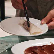 + пекинская утка вкусная в ресторане отеля, подача утки это целое шоу