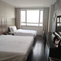 Минусы: очень грязно в коридорах в комнате в ванной везде, комнаты прокурены. Мы бронировали комнату обычную комнату с окном, окно видно на половину из за шкафа, невозможно проветрить, очень темные стены и вообще вся комната как подвал, маленькая 10 этаж. Попросили сделать апргейд, комната более менее светлая просторнее окно можно полноценно открыть, но все равно прокурено на века мне кажется 12 этаж. Пост белье тоже желтоватые уже. Улучшить комнату на 2 ночи стоило 60 юаней. Больше не вернусь сюда.