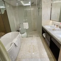 Просторный номер с хорошим освещением и вентиляцией. Мягкое и удобное постельное белье, спалось прошлой ночью просто отлично. Очень хорошая чистота, в углах нет грязи и запахов. Удобства в номере полные и работают без нареканий, особенно понравилась огромная ванна. В целом, очень комфортное пребывание. Завтрак в отеле разнообразный, есть блюда китайской и западной кухни, продукты свежие, вкус отменный. Отлично удовлетворяет различные потребности. Супер!