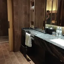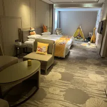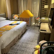Номер очень просторный и светлый. Две полуторные кровати (шириной 1,3 м каждая) были достаточно комфортными для троих. В ванной комнате предусмотрено разделение на сухую и влажную зоны: туалет, раковина и душевая расположены отдельно, что очень удобно. Обслуживание в отеле отличное. Предоставляется бесплатный трансфер до станции метро, Диснейленда и набережной Вайтань (Шанхай), курсирующий туда и обратно. Удобно планировать поездки, если заранее ознакомиться с расписанием шаттлов. В отеле останавливается много местных и иностранных туристов, направляющихся в Диснейленд. При следующей поездке в Диснейленд обязательно остановимся здесь снова.