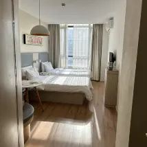 Комната была очень чистой, и расположение было отличным, очень близко к станции метро. Также очень удобно покупать еду, напитки и ходить по магазинам. Окна в номере большие, свет днем очень хороший. Завтрак также очень богатый и на удивление экономичный. Я приеду снова.