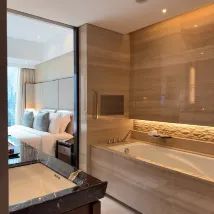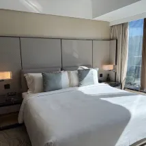 Превосходный отель! Обслуживание было невероятно впечатляющим. От швейцара до администратора – все улыбались и старались удовлетворить мои потребности. В тот вечер я случайно поранил руку и позвонил в службу обслуживания номеров, чтобы мне принесли перевязку. После того, как я спросил о травме, два сотрудника прибыли очень быстро и продезинфицировали мою рану. Даже при выезде менеджер специально спросил о моей травме. Каждый аспект обслуживания был направлен на удовлетворение моих потребностей – скрупулезный и внимательный. Отель может похвастаться превосходным расположением, потрясающими видами, спокойной атмосферой посреди шумного города, первоклассными удобствами и изысканной эстетикой. Поистине приятное пребывание! (К сожалению, в первый день я не запомнил имена менеджера и администратора.)