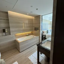 Приветственный подарок в виде фруктов, включая гигантский драконий фрукт, был очень продуманным штрихом. В номере были две раковины, но не было умного туалета и отдельного туалетного столика. Вода предоставлялась в стеклянных бутылках с неограниченным количеством воды. Кровать была не слишком мягкой, но очень удобной. Тапочки были настолько удобными, что я забрала их домой! Обслуживание в постели не предоставлялось. Тренажерный зал и бассейн находятся на первом этаже. Зал для йоги просторный, с зеркалами и мячами для йоги. В зале есть силовые рамы, но нет жима лёжа. Это настоящий рай для тренировки ног с большим количеством оборудования. У каждого тренажёра есть экран, позволяющий видеть, насколько хорошо вы справляетесь, что делает его подходящим для новичков. В зале также есть тренажёр для измерения мышечной массы, что довольно интересно.