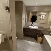 Номер был чистым и опрятным, очень тихим. Мне очень понравился деревянный декор. Обслуживание тоже было на высоте. Мне принесли еду на вынос, и я позвонил на стойку регистрации, но робот был слишком занят, поэтому сотрудники принесли еду вручную. Очень предусмотрительно!