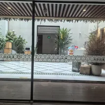 Было очень сложно найти вход в отель. Вывески на английском не было, входом оказался узкий проход к лифту между магазином и кафе. Поднявшись на лифте вас встретит название отеля на стене, но, внимание: название другого хостела!