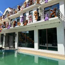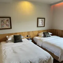 Номер был очень хорошим и чистым. Хозяин тоже был очень любезным. Сюда определённо стоит приехать. Они также предоставили бесплатный завтрак, который был очень вкусным. Дети были в восторге от бассейна и отлично провели время. Интерьер очень необычный. Я слышал, что у отеля брали интервью на каком-то телеканале. Кровать в номере тоже была очень удобной.