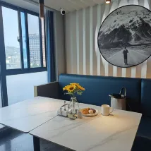 佈局合理,落地玻璃窗很nicr,乾淨整潔,有coffee提供但要是提供勺子就好了,牆上地圖設計很有感覺~you are here