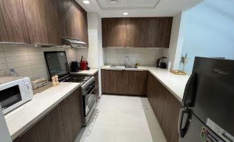 "مرحبًا بكم في ملاذك المثالي ! يقع شقتنا الرائعة بشكل مريح أمام المركز التجاري الكبير، مما يوفر سهولة الوصول إلى التسوق والترفيه. استمتع بفخامة شقة مجهزة بالكامل مع الوصول إلى صالة ألعاب رياضية ومسبحAbout pets:No pets allowed.About checkOut:Check out before 11:00 AM.About children:Children allowed: ages 0-17.About checkIn:Check in after 3:00 PM.About smoking:Smoking is not permitted.About minBookingAge:Minimum age to rent: 18.About events:No events allowed.