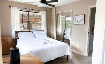 The master bedroom has a JETTED HOT TUB and a huge walking closet. It also gives you a direct access to the 2nd floor deck where you can see some of the best mountain views in the area.