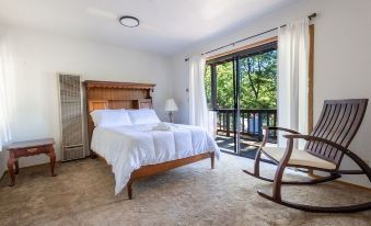 The designated office area has a sliding door right next to the desk where you can watch the forest while doing your work. This office is equipped with two 24-inch monitors, wireless keyboard and mouse, and a USB-C docking station! We really thought about everything you need to get it done!! *You will have access to UNLIMITED high-speed Wi-Fi, which is extremely rare in this area.*