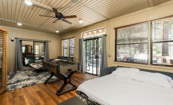 **Note that the Master bedroom connects to the Game/Bonus room with sliding glass doors. These can be shut and locked for privacy or kept open if you have little ones sleeping in the game room and would rather keep the doorway open. Great for families!
