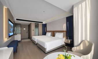 The Huan Man Hotel (Saya People's Square) is a smart hotel in the city that combines natural aesthetics and smart services. The hotel is located in Shaya County, Akesu City, People's Road and King Street intersection of the north direction of 80 meters, It is a mid-end brand hotel of huiyou Hotels Group The hotel has a variety of rooms, all of which are equipped with custom-made beds, naked cotton grass and branded toiletries. Some room types are equipped by ultra-clear projection and multi-inch curtain. Stay here, and nearly a hundred beautiful services are provided. Smart systems cover, delivery robots and the provision of laundry and clothes drying services make the comfort experience within reach. The Huan Man Hotel is innovative in design and unique in style, which combines accommodation, dining, fitness and other functions. Services and products centered on the "consumer" and centered around the needs of the customer provide a warm, efficient, convenient and pleasant stay experience. The hotel demonstrates its unique human concern from the element of water, incorporating a natural concept of "water" throughout the design aesthetic, journey and service of the hotel. " Man's "philosophy of life, Heal all travelers who stop here, while the friend service provides guests with childhood popcorn, coffee, exit surprises, and various value-added services, creating a place for travelers from all over the world to enjoy the natural beauty of the city.