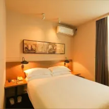 Часто путешествую, останавливаюсь в отелях и редко оставляю плохие отзывы, понимая, как сложно вести бизнес. Но в этот раз я просто обязана поделиться своим опытом и предостеречь других от этого места. Забронировала отель, прочитав в описании, что он находится очень близко к Северному вокзалу, всего в десяти минутах ходьбы. Но на деле мне пришлось идти 30 минут под 32-градусной жарой. Советую всем сразу брать такси на вокзале. Когда я добралась до отеля, это было просто что-то! Ощущение, будто попала в дешёвую гостиницу из маленького городка за 60 юаней. Комната оказалась крошечной, оборудование старое, кондиционер грохотал. Полотенца были грязно-жёлтыми, на прикроватной лампе лежал толстый слой пыли, а постельное бельё и пододеяльники выглядели как какое-то старьё, поношенное до дыр. Держатель для душа был сломан и не работал, приходилось держать лейку в руке. Самое главное – не было кондиционера для волос. В этом плане даже в самых простых гостиницах сервис лучше. Спустилась вниз, чтобы купить кондиционер, и заодно высказала своё замечание на ресепшене. Меня встретила худая девушка с длинными волосами, собранными в хвост. Она высокомерно, жёстким тоном и с презрительным выражением лица заявила, что их сеть отелей принципиально не предоставляет кондиционеры для волос. Просто уму непостижимо! Вот это «шик» для компании, акции которой котируются на бирже! В этот отель я больше ни ногой. Это был мой первый и последний раз здесь!