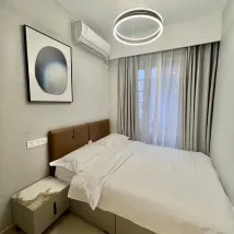 Комната была очень плохая, внутри двери не было никакой безопасности, ручка отвалилась, кондиционер работал громко, вытяжной вентилятор в ванной издавал громкий шум, как трактор, комната была очень маленькой, большая кровать, только С одной стороны оставалось 40-50 см места, выглядело так: Кровать скрипит, когда переворачиваешься. Сильно отличается от пропагандистской картинки. Снаружи комнаты есть балкон, но он голый, с цементным полом, весь серый и очень узкий.