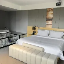 По прибытии я обнаружил, что это действительно очень хорошо спроектированный и со вкусом оформленный отель. В целом он относительно теплый и создает у людей ощущение комфорта. В отеле есть удобная парковка и хорошее обслуживание на стойке регистрации. Они взяли на себя инициативу изменить нас. в более просторный номер. Интерьер чистый и тихий, номер хорошо звукоизолирован. Окружающая среда также очень хорошая. Ночью оживленно, а днем относительно тихо. Я приехал сюда после деловой поездки и остановился в этом отеле. Общее впечатление очень хорошее.