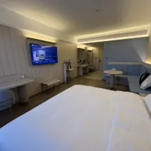 房間寬敞明亮乾淨舒適,環境優美,交通便利,出去就有地鐵站和高鐵站,餐食也符合我的口味